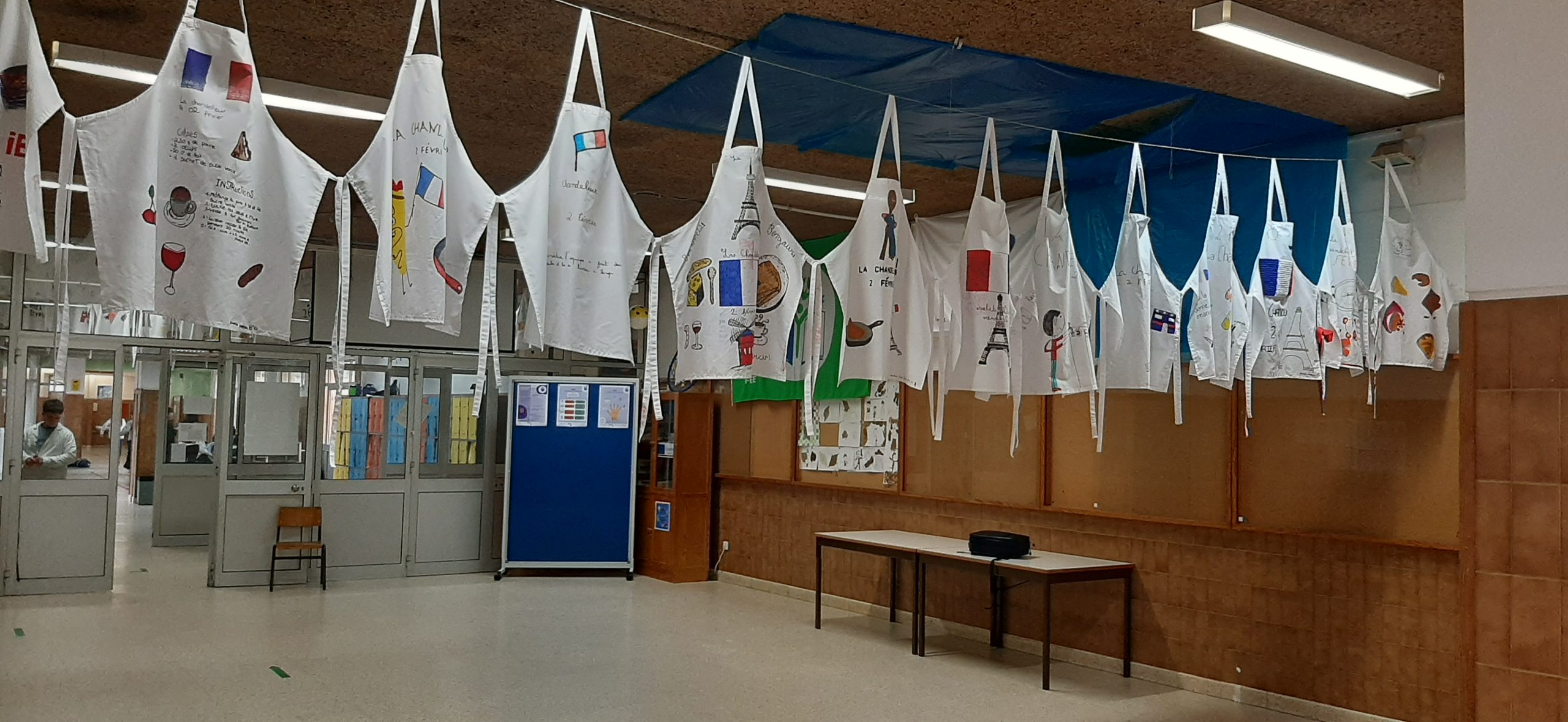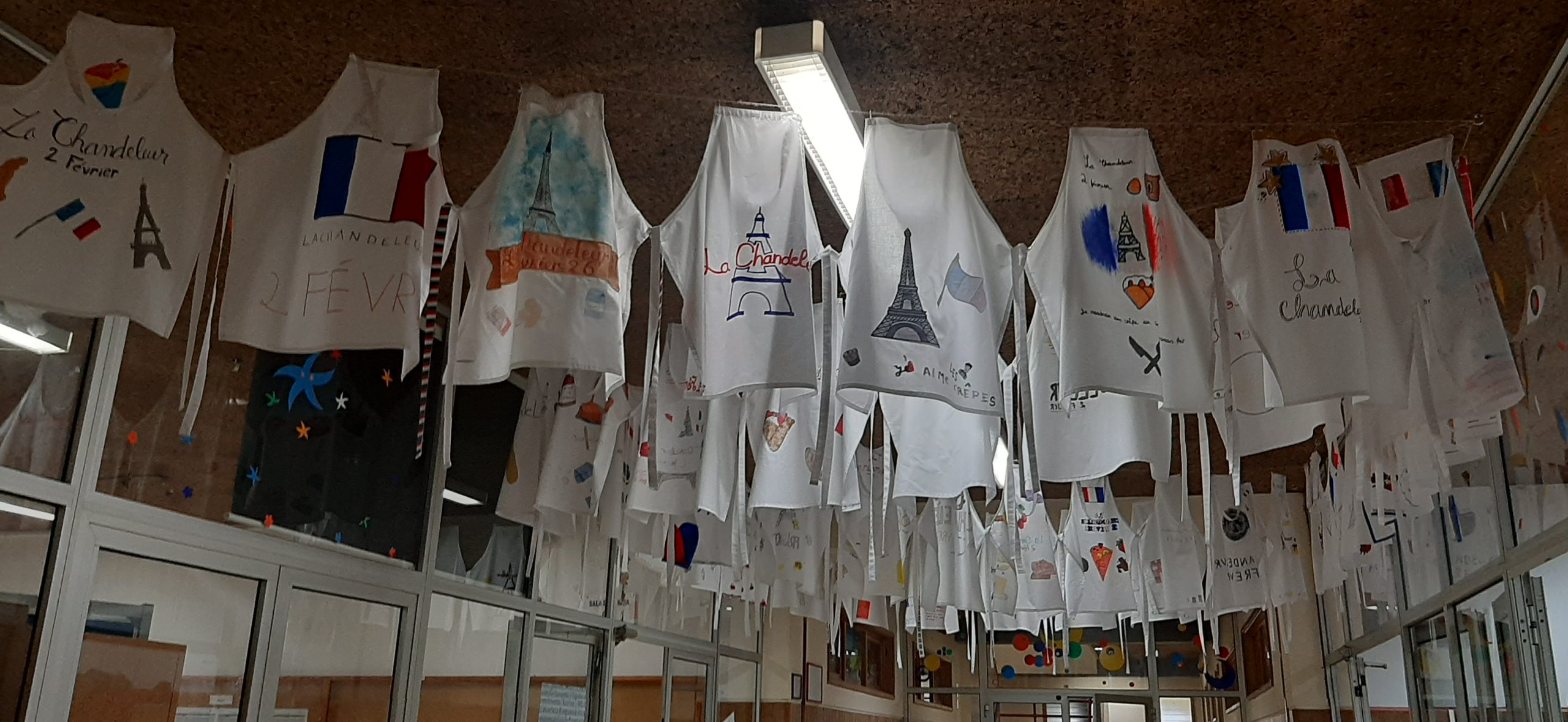 Na sequência do desafio lançado aos alunos do 8º ano de celebrar la Chandeleur, como forma de proporcionar à comunidade educativa uma tradição cultural e gastronómica francesa, celebrada, em França, a 2 de fevereiro: confeção e degustação de crêpes, as professoras de Francês contaram com a sua participação, assim como a dos encarregados de educação na aquisição e decoração de tabliers (aventais). A partir de um trabalho de pesquisa, os tabliers continham elementos importantes, não só para a compreensão cultural da efeméride, como também para o alargamento de vocabulário em língua francesa: identificação e data da festividade; monumento ou símbolo de França; ingredientes/complementos/utensílios de cozinha utilizados na confeção deste dessert; uma frase com as palavras «crêpe(s)» e «la Chandeleur»; e, ainda, a utilização das cores da bandeira francesa.
